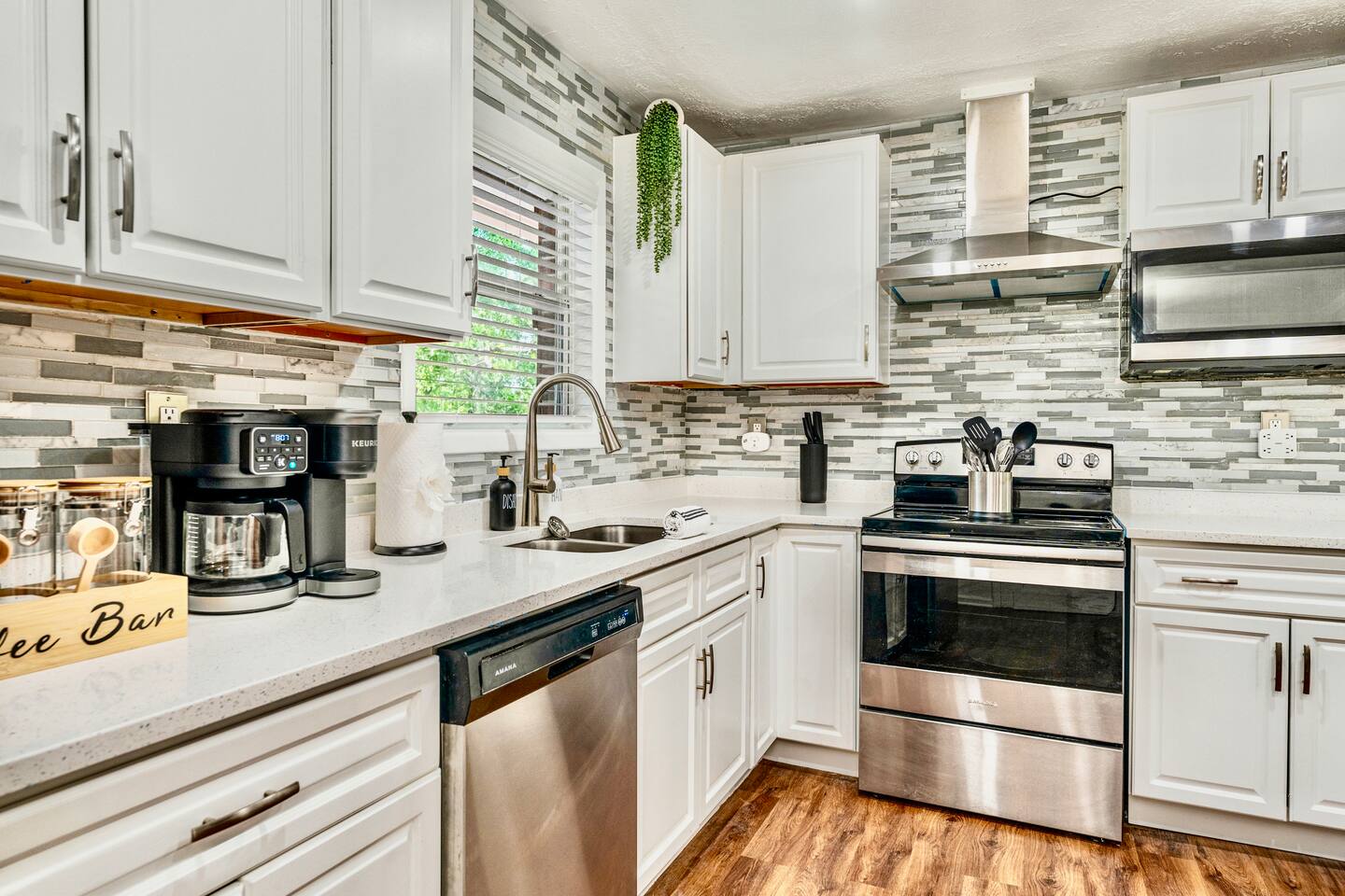 Butterfly Bungalow is a 4BR|2BA newly renovated home with fully equipped kitchen and brand new washer/dryer. The outdoor covered terrace seats 8 and includes a brand new BBQ grill for those special cookouts. Enjoy some quiet time by the firepit with comfortable Adirondack chairs surrounded by a beautiful flower garden & swing set! This is a perfect place to enjoy a luxurious stay with family and friends. Whether you are celebrating or relaxing, there’s something for everyone!